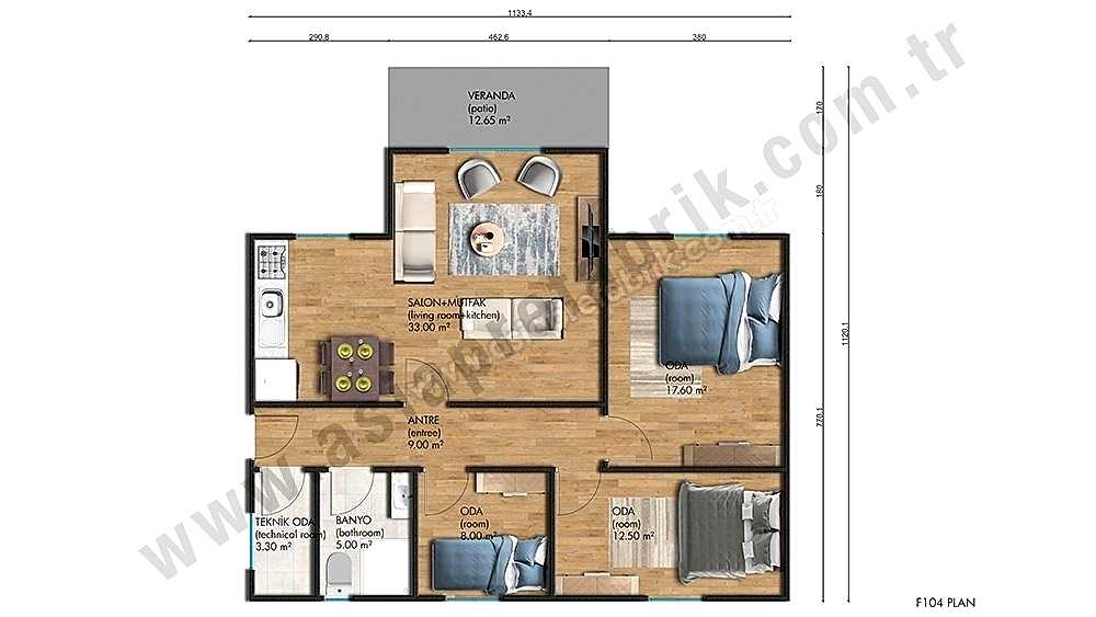 • Elektrik Tesisatı; Prizler, kablolar, sigorta kutuları ve aydınlatma armatürleri sıva altı uygulanmaktadır.