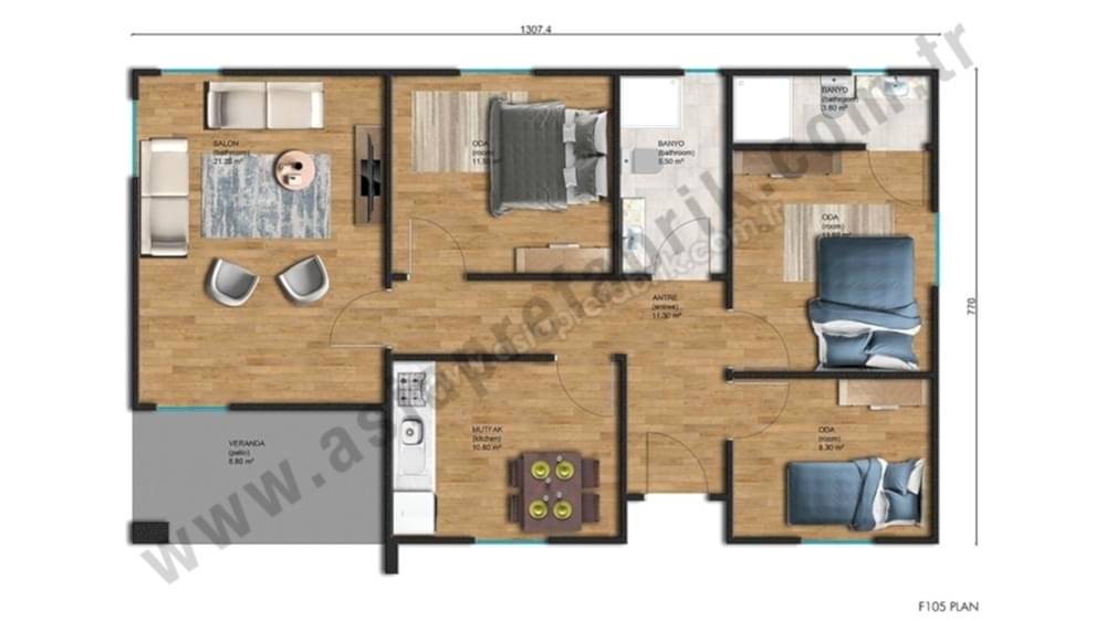 • Dış Kapılar; 100x200 cm ölçülerde çelik kapı veya karolajlı cam kaplı.İç Kapılar;90x200 cm Amerikan panel kapı kullanılmaktadır.