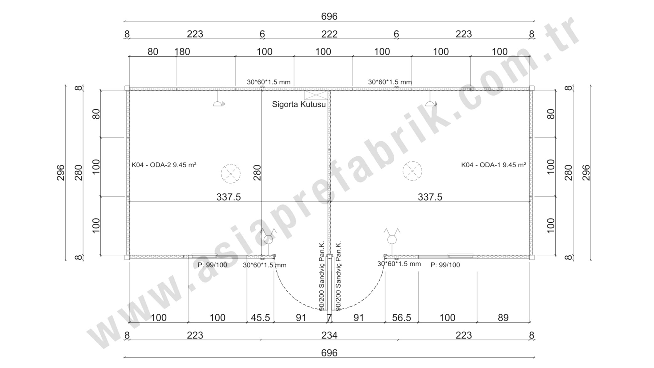 DIŞ DUVAR Ve İÇ DUVARDIŞ ve İÇ DUVAR SİSTEMİ50mm sandvic panel cephe kaplaması ( 0,25 mm Ral 9002 Boyalısac+50 mm 14 Dansite Eps + 0,25 mm Ral 9002 Boyalı Saç)
