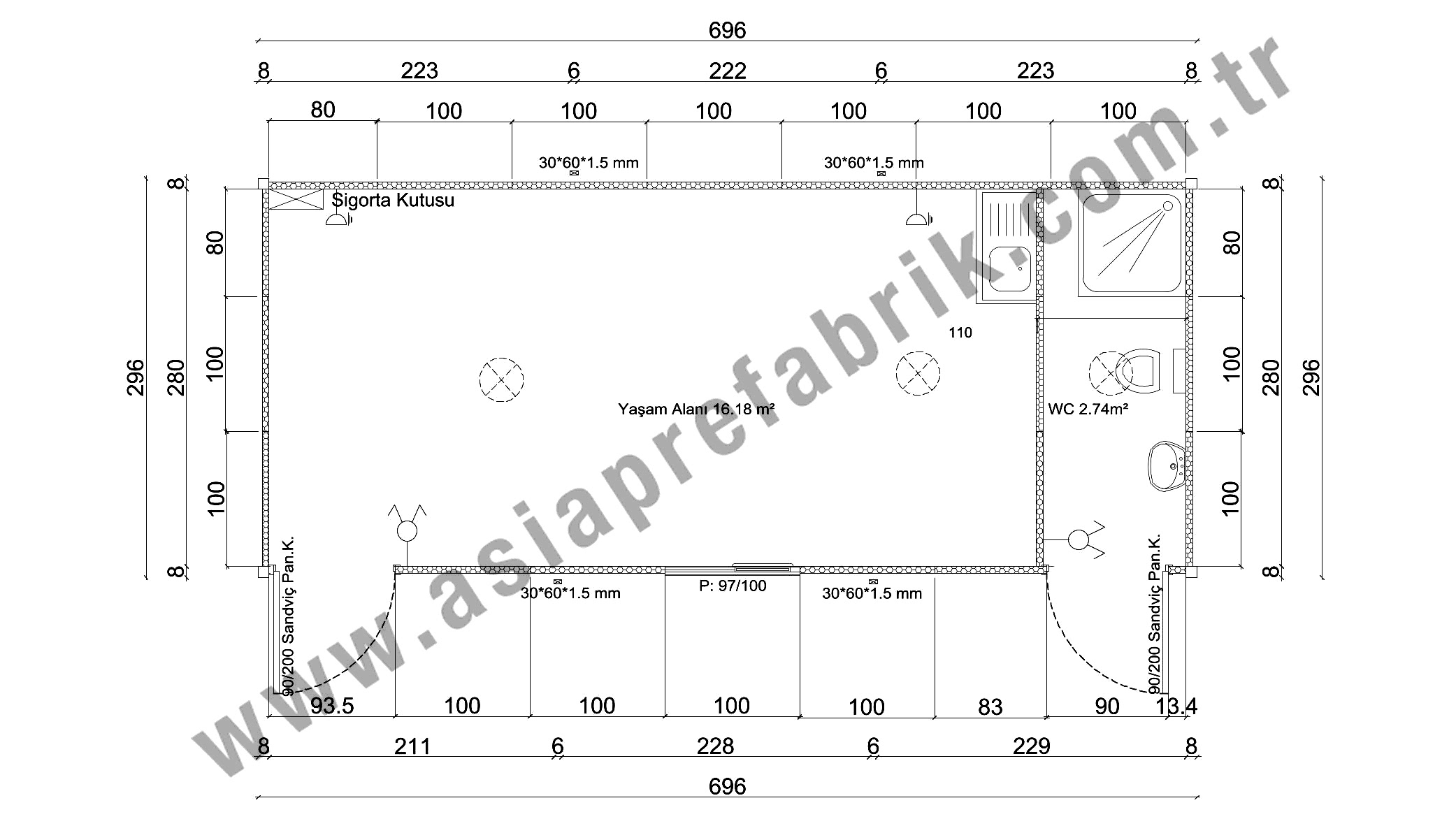 Konteynerler Standart Olarak 300x700*265 cm ve 240x600x265 cm Ebatlarında Üretilmektedir.